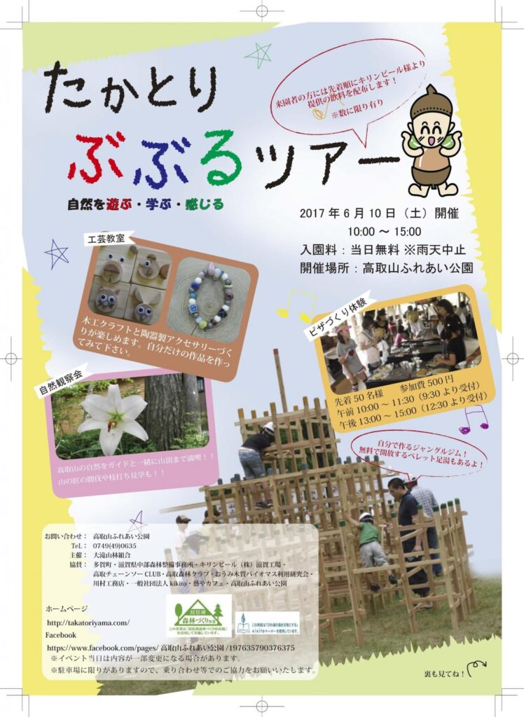 高取山山頂までガイドさんと登る、自然観察会や木製のジャングルジム作り体験、ピザ作り体験等々の内容となっております。