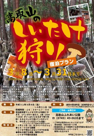 今年度、初めての試みとしまして、その椎茸をお客様の手で取っていただき、採れたてのお味を実感していただける「宿泊プラン」が、出来ました。寒い時期の椎茸は肉厚で身がギュッとしまっており、食べ応えがあります。