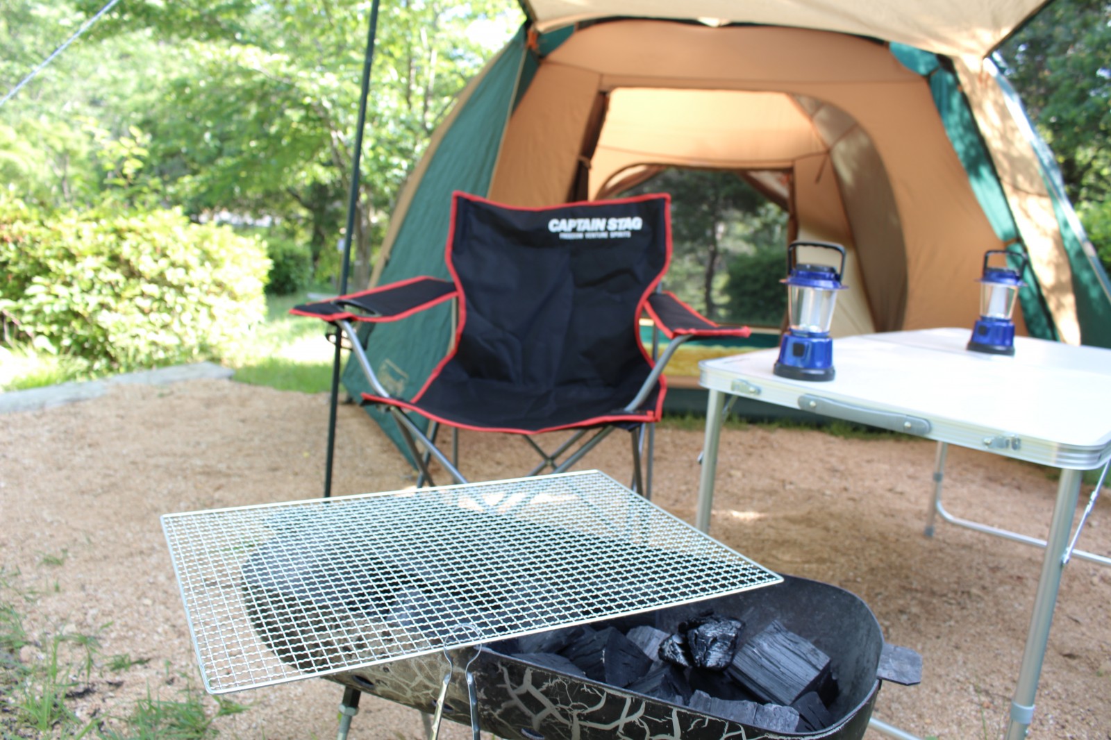内訳は、フリーサイト利用料×1、入園料×4人分、テント×1、寝袋×4、ランタン×2、テーブル×1、椅子×4、BBQコンロ(網、火箸)×1、炭orマキ×2、鍋等小物用品×5、他、が7800円でついてきます!