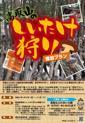 今年度、初めての試みとしまして、その椎茸をお客様の手で取っていただき、採れたてのお味を実感していただける「宿泊プラン」が、出来ました。寒い時期の椎茸は肉厚で身がギュッとしまっており、食べ応えがあります。
